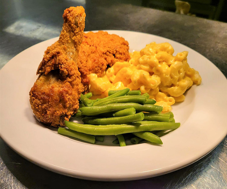 Chicken Tenders: Chicken tenders served with mashed potatoes, green beans and a side salad
