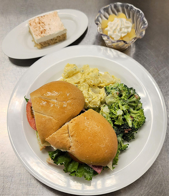 In between our scheduled dining times, all-day café menu items are provided from 7:30 AM – 6:30 PM (sample items below).